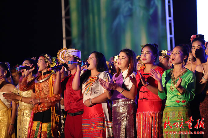 18日晚,盈江县委副书记、县长岩补宣布傣历新年庆典活动正式开幕