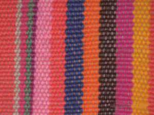 北京服装学院民族服饰博物馆藏花腰傣彩色织锦腰带细节。