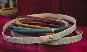 德昂族以藤饰为美,这种习俗从古沿袭至今,集中表现在妇女腰间缠着的几十圈精致的藤篾腰箍。