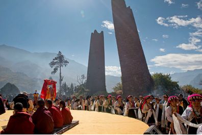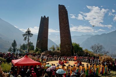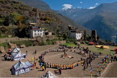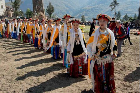 古碉下举行传统的女子成人礼仪式