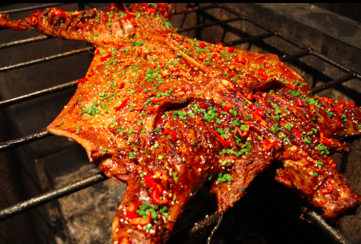 全羊是蒙古族在喜庆宴会和招待尊贵客人时使用的食品。蒙古语把全羊叫“首思”。在宴席中如果上全羊,则称全羊席。在全羊席中,一般是在食客吃了牛羊肉制的冷热菜正趋兴奋之时上全羊。一种是让客人观看后撤回厨房,把皮层肉片切成半寸宽、二寸长的方块,放在大盘内,再把贴骨肉切好,一同上桌。另一种是厨师当客人的面切块。一般上烤全羊后,随上蒙古包子和大米饭、羊骨汤。