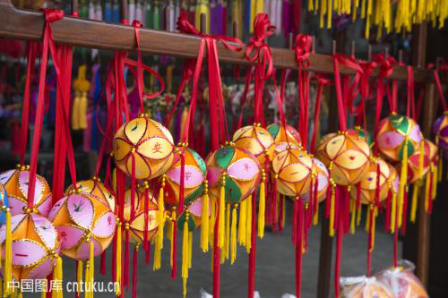广西靖西壮族绣球作为壮族民众的传统工艺品,内含吉祥寓意,传达爱的信息,集审美和收藏价值于一体,其符号性、识别性尤其具有鲜明的壮族文化特色,且小巧精致便于携带,是壮家人定情和民俗体育运动的重要载体。靖西壮族绣球多以红、黄(粉)、绿三色做底及面料。绣球大多为12瓣,每瓣皆绣上各式吉祥物,如梅、兰、菊、竹等花卉图案或春燕、龙、凤等。随着壮族绣球的不断演进和社会影响的扩大,逐渐成为了广西壮族文化的符号象征之一,在当代广西区域民族文化视野中,具有独特的现代审美意味。符号化绣球不到那巧妙地继承和弘扬了古老的绣球文化,而且以全新的审美形式出现在各种公共空间和重大场合中,成为了广西壮族重要的文化资源。