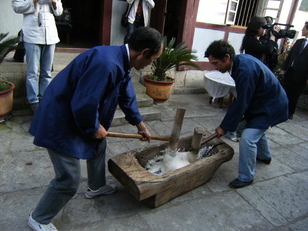 贵阳乌当区偏坡布依寨村民做打糕 老铁供图