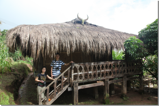 普通房子:房子内部隔做两间(主间与客间)。在客间的西端开—“鬼门”,连接鬼门的外边一般都架置一个掌子(用竹子和木料搭成的七、八平米的凉台),有的在房子左边靠客门外架一个掌子,用途是晒晾粮食、衣物,或堆放杂物等,白天妇女还可以在上面做针线活。房子的前厦是放置牛头或推集粮食的地方,后厦下面喂猪、鸡和放杵碓。房子右边开有一道“火门”,在“火门”右前方栽有牛角叉,左边栽有牛尾巴桩。