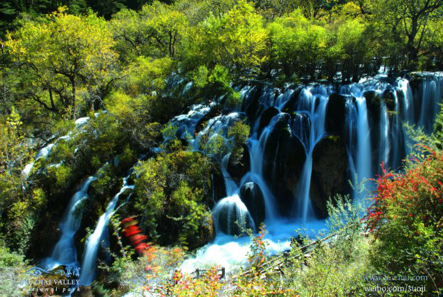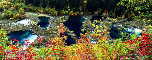 九寨沟里九个古老的藏族村寨,到处有石磨房、栈道、经幡和藏羌歌舞等,藏族特色浓郁而神秘。原始古朴的村寨散落在绿树环抱的群山之中,显得更加古老、宁静。九寨沟,平均海拔在2500米左右,属于寒温带地区,所以冬无严寒,夏无酷暑,在这里的传统的建筑大都为木结构。
