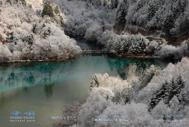 九寨沟位于四川省西北部岷山山脉南段的阿坝藏族羌族自治州九寨沟县漳扎镇境内,年均气温6—14℃度,冬无严寒,夏季凉爽,四季景色各异:仲春树绿花艳,盛夏幽湖翠山,金秋尽染山林,隆冬冰塑自然。以翠湖、叠瀑、彩林、雪峰、藏情、蓝冰“六绝”著称于世。
