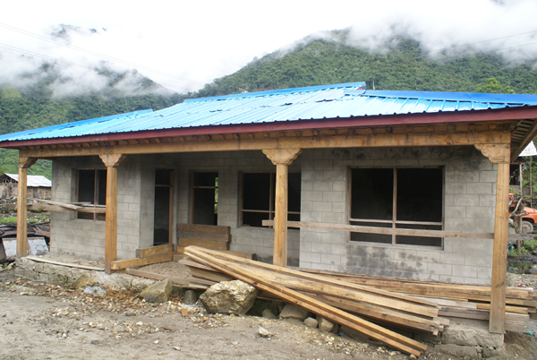 住宅一般是3层(也有4或5层的),向着阳光,错落有致,庭院宽敞而大方,便于活动和饲养家畜。房屋下层叫“萨容”,意为关牲畜的“圈”;上层叫做“徬”,用来存放青稞、荞麦及其他杂物;中层叫作“米苏麦”,是住人的居室,卧室内多用木板相隔里外两间,里间一般为仓库,有门窗;外间面积很大,靠墙的中间临近窗子下方,设有火塘,火塘是做饭、待客、聚会的核心场所,具有神圣地位。门一般朝东、南方向开,门前设有用木杆铺搭的凉台,用石砌或木板做的阶梯与楼下相通。房架为石木结构,梁、檩、椽之间搭接处均用竹篾条捆绑,很少用铁钉。