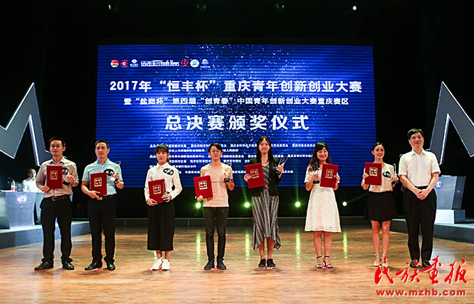 钟亿灵(右二)参加重庆市创新创业大赛并荣获一等奖。