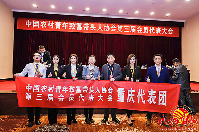 钟亿灵(左二)参加中国农村青年致富带头人协会第三届会员代表大会。