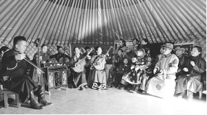 草原上的“红色文艺轻骑兵”——乌兰牧骑队员在为牧民表演文艺节目。